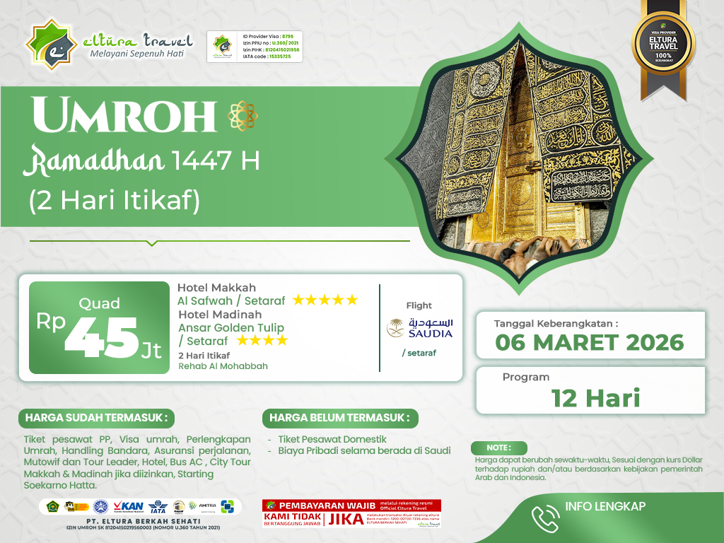 Umroh Ramadhan 1447H (2 hari itikaf) 12 Hari